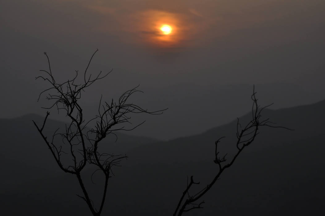 Evening we set out to have a view of waterfalls. The rocks were slippery by the water droplets rising from waterfalls. The sound of water cascading was soothing for mind, body and soul. !.We had a view of Jamalabad fort in west, Amedhikal peak to south, Kodekallu and Balegudda grasslands, Minchukallu and Kumba kallu in the distance. We sat on the rocky bed gazing the horizon in absolute silence. It was 5:30 pm the sun was making furious attempts to say goodbye after his duty. The western sky was in a riot of colours. Before the darkness fell we cautiously retraced our fall to the campsite. A fabulous dinner was prepared by the enthusiastic team. In the coldness of Night with star studded sky we played Anthyakshari,with the music of flowing water, all shared the experiences with a campfire. All slept after a long chat!
