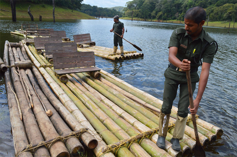 The Periyar Tiger Reserve in Thekkady offers nature 's bounty in terms of biodiversity, landscape and calmness. The best part of Periyar is however the watershed created by the rivers, Periyar and Pamba. High up in the famous Cardamom Hills, it falls within the prime boundaries of the Western Ghats and is dotted by the only evergreen forests patches in India. We took our time to get lost in the serenity and when we came back to our consciousness, our bamboo rafts were already waiting to take us in.