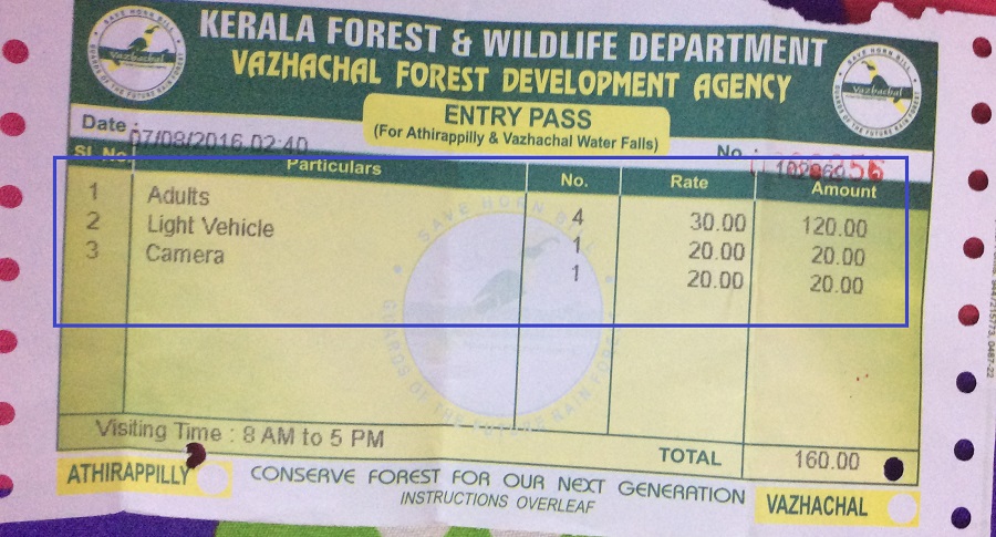 Vazachal is another amazing waterfall, just 7 km away from Athirapally. Do note that you will have to get your tickets to visit both Athirapally and Vazachal waterfall. The same ticket that got your entry to the Athirapally Waterfalls will get you through Vazachal also! Do care not to throw away the ticket in all the excitement. The per person entry charge covering both the falls is INR 30, camera & parking charges will be extra.