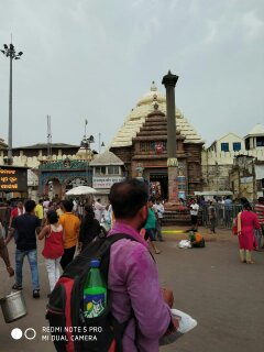 On entering the main hall of the Temple, we joined hundreds of other devotees waiting in a queue to catch a glimpse of the Lord Jagannath. There were many priests or œPandas as they are locally called; showering blessings and asking for donations or œDakshinas . We struggled to make our way through the large crowd before finally reaching inside main sanctum of the Temple. The sanctum of the Jagannath Temple consists of three idols; Lord Jagannath and his siblings Lord Balram and Devi Subhadra. We only managed to get a couple of seconds to offer our prayers to the almighty before we were pushed outside by the huge crowd. Nevertheless, we were contended to receive the Lord 's blessing and as we came out of the main sanctum, we decided to explore the temple premises.