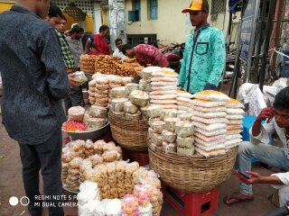We came out of the temple and explored the local market in the vicinity to purchase the popular œPrasad for our friends back home. The local shops were decorated with numerous sizes and varieties of sculptures and portraits of the deity. They also sold various items used in the œPuja of the Temple which can be brought back home. We purchased some of these items and proceeded to our destination.