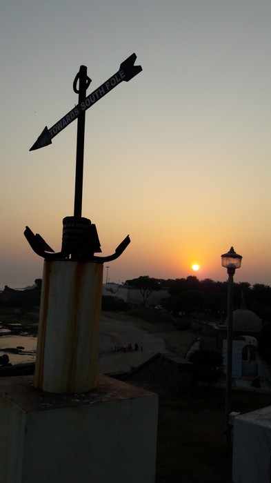 Gujarat Roads trust me are long drive phobic (so good they are)..It was a smooth drive, we started early morning..Had our lunch at a restaurant near Somnath (Viraval) and reached our hotel at 3:00 Pm..We( mum ,dad,hubby,Daughter) were exhausted but not dead tired..took a power nap..and were up again at 5:00 to see the sun set ¦:) We Bid a Diu to the sun for the day .. @ Jalandhar beach ¦( it is near circuit house) ¦