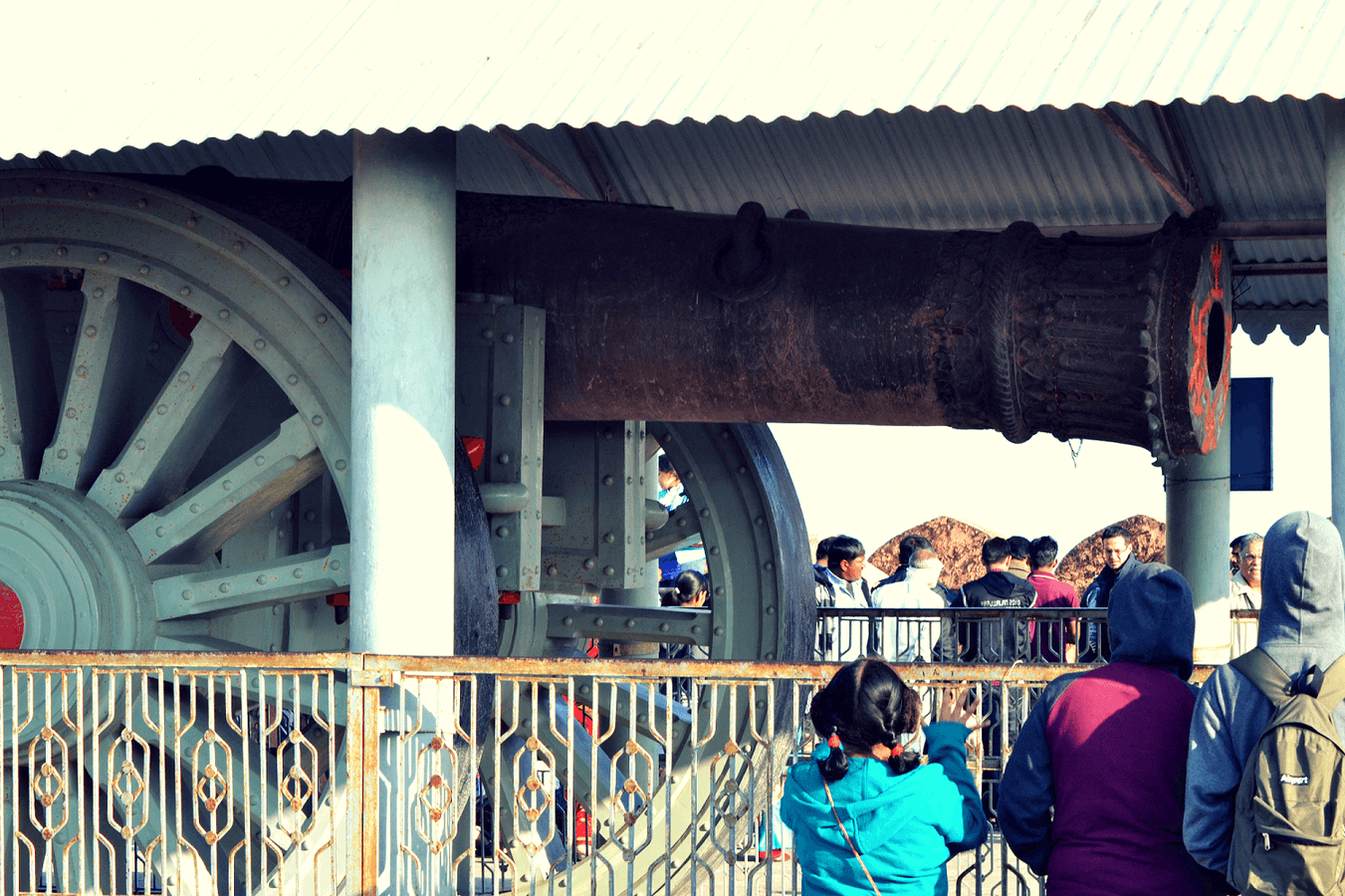 It was time for lunch and we treated ourselves to some light Rajasthani food, accompanied by Dal Bati and Butter Milk. Once we finished and had stretched our legs, we resumed our day trip and by 4.30 PM, reached the Jaigarh Fort, just above the Amber Fort. The best thing about the Jaigarh Fort is the view it presents. From the top, you can get a view of the whole city and it 's magnificent. I was also surprised by the sheer size of the cannons that were placed in the fort crevices to attack incoming enemies! Now here ‘s a firsthand tip though Amber Fort can be directly accessible from the backside of Jaigarh Fort, it won’t be an advisable option. Not only will is consume a lot of your trip time, but you also might have to walk a bit or hire a local car that charge too much. It 's way easier and cheaper to travel from the main gate of the Jaigarh Forth to the Amber Fort. We quit midway and hurried back to our cab at the front gate of Jaigarh Fort to be able to make it to Hawamahal in time. However, it was already getting hectic and we decided to just check Hawamahal from the outside and come back the next day if time permits.