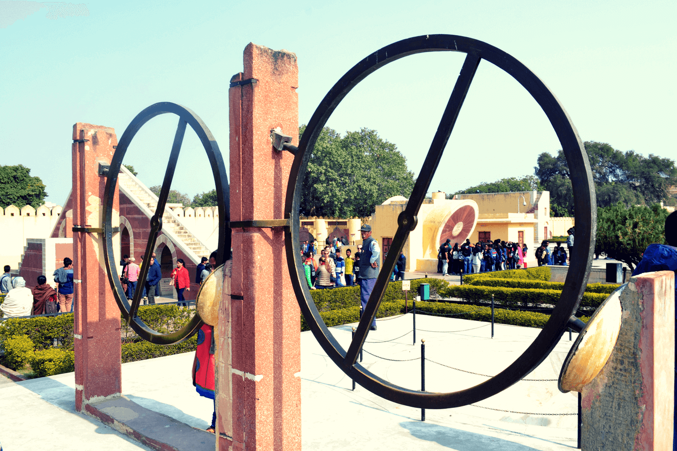The hustle in the street was slowly getting to show itself and we took the opportunity to have one of the most outstanding tea and breakfast ever! Our next stop was the Albert Hall Museum, a showcase for old weapons and armors used during the reign of the Rajasthani Royalty. We completed the museum trip by 12 o'clock and hastened to Hawamahal, a highlight of our trip. However, it was already too cluttered and we thought it would be better to check it during our return in the evening, when the traffic would have again dropped down. Instead, we headed on to Jantar Mantar, another well known destination in the city, and reached it by 12.30. We hired a guide for INR 250 and it was totally worth it as we would have never known so many amazing things about the place. One of the things that especially amused me was the ancient sun and moon dial that could tell the time of the day and night precisely!