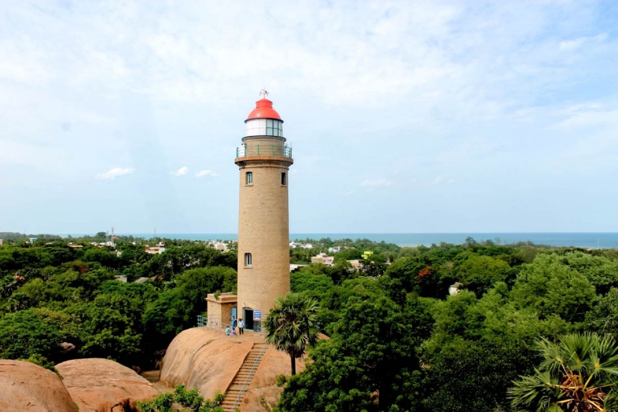 Picturesque, panoramic view from archaic Olikaneeswara Temple Light House of the historic city and the white swirls kissing the sky. Climb a few steps and invade the contrast. Doors are close, look at the new Lighthouse from here. Spend some time at the top to be filled with the chilled breeze and tranquility.