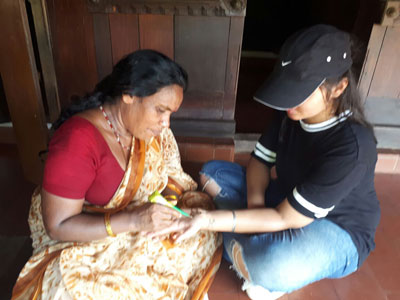 The attention to detail intricated in every dwelling speaks about the life and culture of the community. The museum depicts the terrain of South Indian states and the class of people and their equally elaborated life and living. At each abode museum, there are ongoing workshops of puppetry, Mehendi, painting, drawing, glass moulding and many others at a nominal price. As I am a curious creature, I feel to visit this museum in whole, one needs minimum 02 days. Every model of the museum speaks about the lifestyle of those days, especially the open verandah and crammed rooms. Also, the house of a Syrian family that migrated to Kerala is gorgeous and rustic with the pure wooden charm in roofs and floors. I got the Indian tattoo done here by a local Tam lady. There are alfresco shops near the restaurant of antique and raw coconut jewellery.