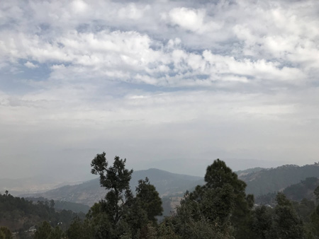 Next day, the morning welcomed us with this beautiful view of the mountain range which can be seen from our cottage. Due to cloudy weather, we could not have a clear sighting of Nandadevi mountain range but as per our discussion with care taker, we can have clear view of this mountain during clear sky. We started doing our routine exercise to warm our body with some stretching, running and push-ups. Waking up with the purest air and surroundings; we got ready to check out from the resort. A tempo traveler from the Trek The Himalaya was ready to pick up us from Kausani main market. It drove us to the base camp of Brahmtal Trek Lohajung; a small village.